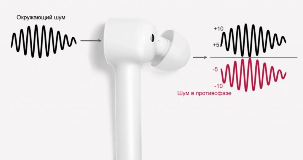 En plus de la suppression passive du bruit, ce modèle dispose d'une suppression active du bruit. Si vous maintenez enfoncé le panneau tactile de l'un des écouteurs pendant trois secondes, l'ANC (Active Noise Cancellation) s'activera. Les microphones intégrés à l'appareil captent les bruits parasites, après quoi les haut-parleurs diffusent ce signal en opposition de phase. En d'autres termes, une « onde miroir » se forme qui supprime les bruits parasites.