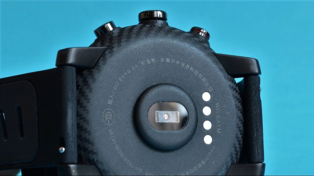Le corps du modèle est en polycarbonate, que les développeurs ont complété par des matériaux en fibre de verre. À l'arrière, il y a une plate-forme de contact pour connecter le gadget à la station d'accueil et un capteur pour calculer la fréquence cardiaque. Sur le côté, il y a 3 boutons en acier inoxydable de haute qualité. Soit dit en passant, il s'agit d'une innovation très importante par rapport à son prédécesseur, car il était inconfortable d'entrer dans les petits composants de commande de l'écran tactile pendant une course.