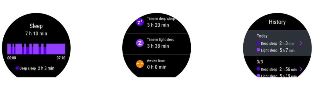 Toutes les données collectées vont dans le programme du smartphone et sont converties en tableaux et graphiques compréhensibles. En ce qui concerne les activités sportives, la montre dispose de modes spéciaux pour 11 types d'exercices différents. Cela inclut le jogging, la marche, l'entraînement sur tapis roulant, la natation, le cyclisme, le triathlon, etc. L'écran affiche différentes valeurs en fonction du mode sélectionné.