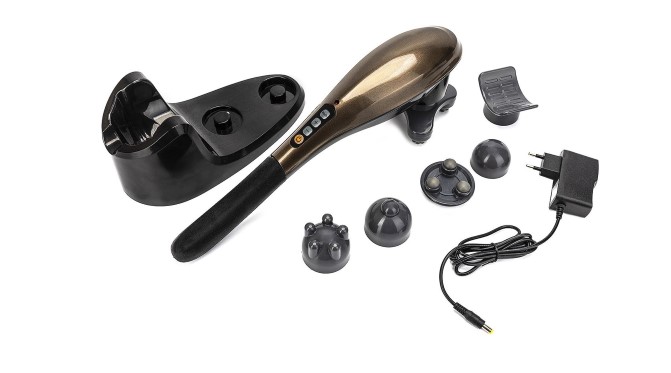 Un appareil universel sans fil pour masser l'abdomen, les fesses, le dos, le bas du dos, le cou, les bras et les jambes plaira à toutes les femmes. Après tout, vous voulez souvent vous détendre, donner du repos aux membres fatigués et aux parties du corps. Il suffit d'installer l'une des six buses en fonction du type de massage et de sélectionner le mode et le niveau d'intensité souhaités (faible, moyen, élevé). L'appareil ne nécessite pas de connexion réseau, il se recharge rapidement à l'aide d'un câble USB, y compris depuis un ordinateur.S'éteint automatiquement 30 minutes après la fin de la dernière manipulation. Il est recommandé d'utiliser le masseur deux fois par jour pendant 10 à 15 minutes. Le fabricant accorde une garantie d'un an, confirme la possibilité d'effectuer différents types de massage :