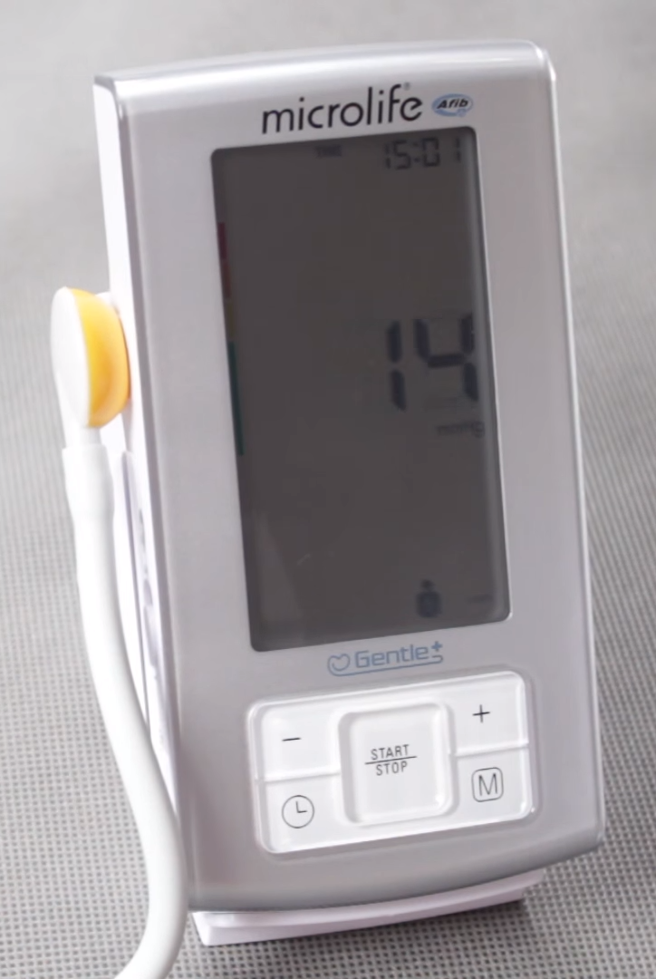 Dieses Blutdruckmessgerät muss am Handgelenk getragen werden. Es ist kompakt und dank seiner Abmessungen können Sie es überall hin mitnehmen. Das Gerät ist zuverlässig und vollautomatisch, die Manschette kann von 13,5 bis 21,5 cm eingestellt werden, der Speicher des Geräts ermöglicht es Ihnen, Messwerte mit 30 Speicherungen aufzuzeichnen. Der LCD-Bildschirm zeigt die Werte in Großschrift auf drei Zeilen an. Eine spezielle Funktion meldet Bluthochdruck oder Herzrhythmusstörungen des Patienten sowie Bedienungsfehler. Nach Abschluss der Arbeiten schaltet sich das Gerät selbst aus. Preis in Geschäften: etwa 2400 Rubel.