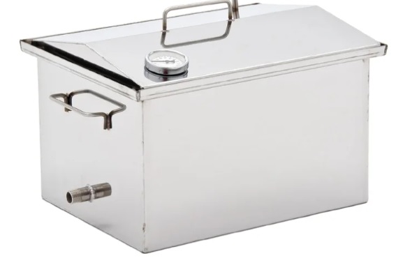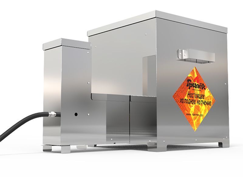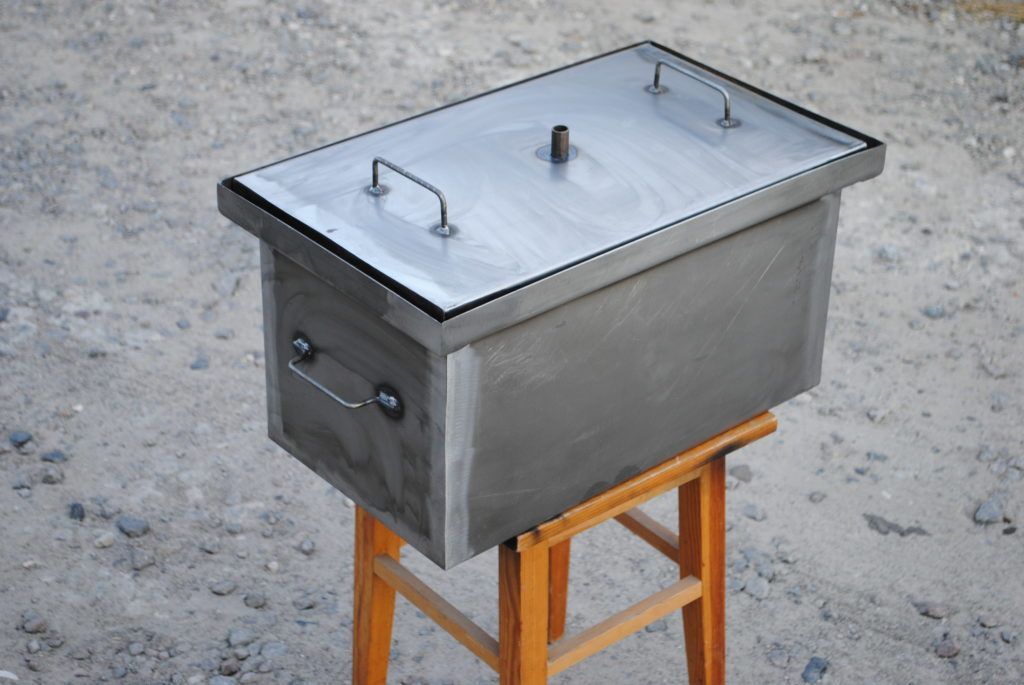 Die bodenartige Struktur, die mit Hackschnitzeln arbeitet, besteht aus Stahl. Es ist sowohl für das Kalt- als auch für das Heißräuchern konzipiert. Das Gehäuse ist mit einem Thermometer, einer Wasserdichtung, einem Deckel mit bequemem Griff und einer ergonomischen Form („Haus“), einer Auffangschale zum Auffangen von Fett ausgestattet. Auf dem Land kann eine Räucherei installiert werden, um Ihre Lieben mit köstlichen Gerichten zu erfreuen.