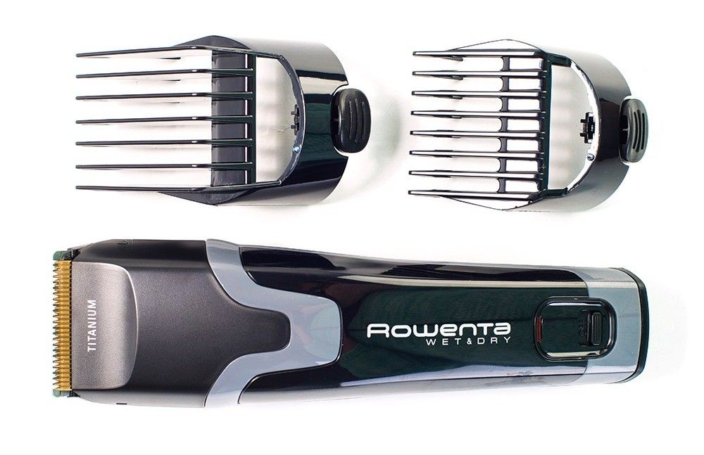 Im Kit befindet sich neben zwei Düsen ein Gerät zum Rasieren. Mit seiner Hilfe ist es einfach, eine "Null" auf dem Kopf zu erstellen. Auch kann diese Technik den Bart schneiden. Das Einstellrad hilft Ihnen bei der Auswahl eines der 32 verfügbaren Modi. Fast 45 Minuten kann es autonom arbeiten, ohne sich mit dem Netzwerk zu verbinden, diese nützliche Funktion hilft bei der Arbeit mit unruhigen Kindern.