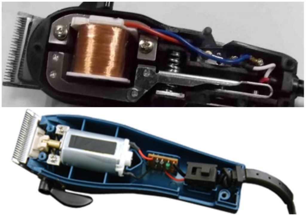 Vibrationsmodelle haben unten feststehende Messer und oben bewegliche (einstellbare) Messer, die mit einem Hebel nach vorne gezogen werden können. Dies ist eine bequeme Option, der einzige Nachteil ist, dass diese Technik keine Glatze schneidet.