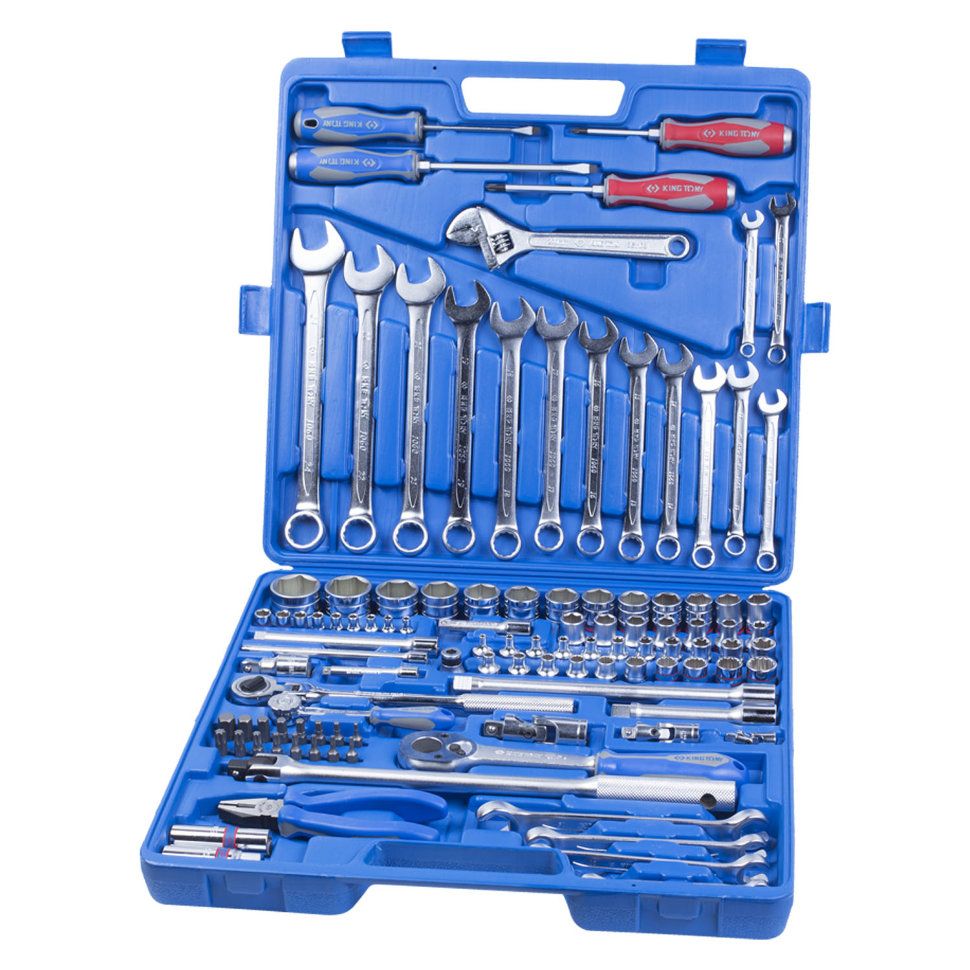 Dieses Set enthält 107 Artikel. Mit ihm wird die Vorbeugung und Wartung von Autos nicht beängstigend sein. Absolut alle Gegenstände werden normalerweise dank des bequemsten und nicht sperrigen Koffers aufbewahrt. Die Langlebigkeit des Betriebs ist gewährleistet. Zuverlässigkeit bietet Chrom-Vanadium-Beschichtung.