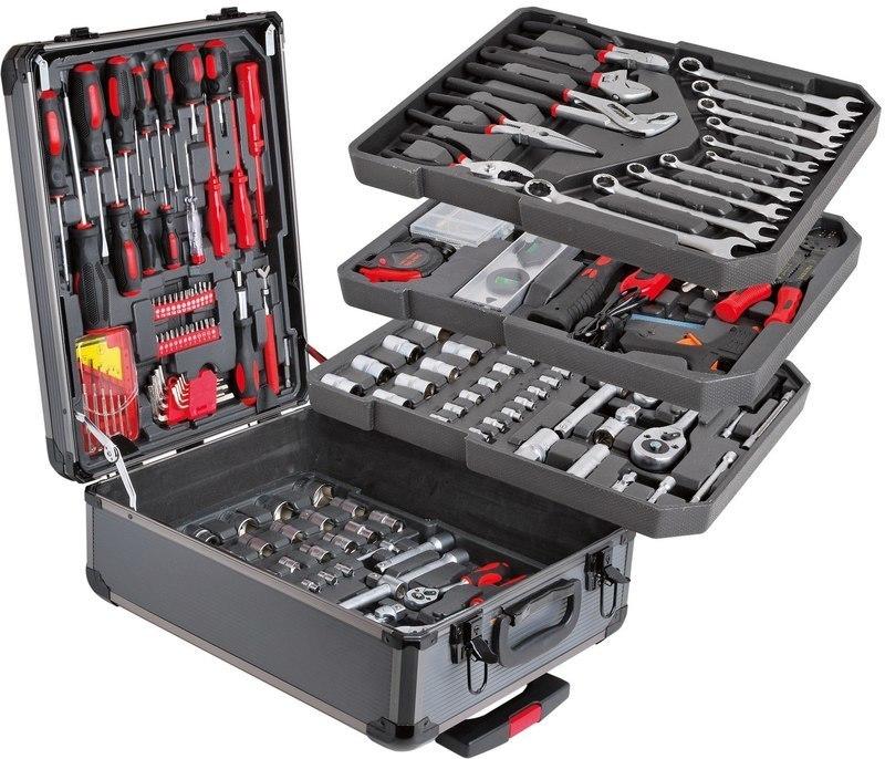 Unverzichtbar bei kleineren und mittleren Autoreparaturen. Alle Artikel sind sicher im Koffer untergebracht. Allerdings können einzelne Bauteile brechen, wenn sie häufig stark belastet werden. Der Hauptvorteil sind Metallschlösser. Erschwingliche Preise ziehen auch Käufer an.