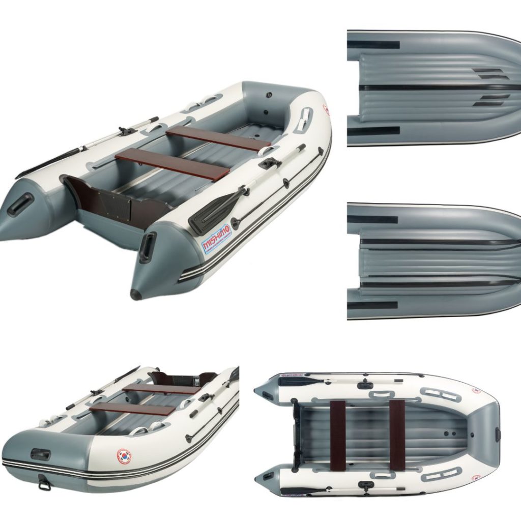 MISHIMO FAMILY LITE 350 ist eine Familienversion eines aufblasbaren Bootes mit 5 Sitzen und geeignet für 5 Personen. Das Modell ist einkielig, aber durch die durchdachte Geometrie sehr stabil. Dieses Boot besteht aus in Korea hergestelltem Stoff, der sich durch seine hohe Festigkeit von anderen unterscheidet.