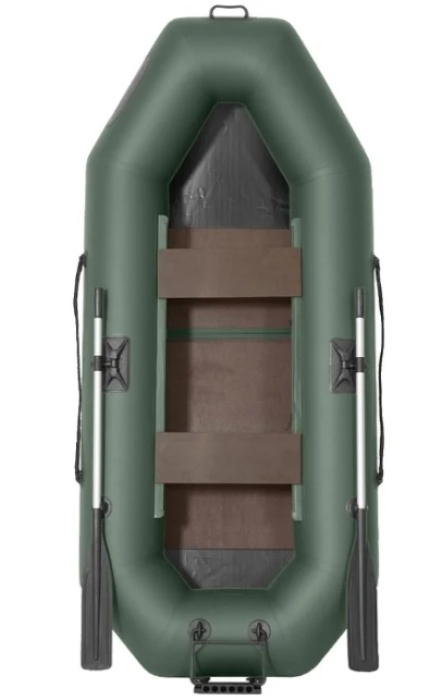 2-Sitzer-Rudermodell aus verstärktem PVC, ausgestattet mit einem harten Sitz und 2 Luftkammern. Im Lieferumfang sind ein Handlaufseil, Ruder und Dollen enthalten. Entlang der Kontur des Körpers befinden sich Griffe und Befestigungen für Ruder. Die Farbe des Produkts ist dunkelgrün. Länge - 260 cm Zulässige Belastung - 220 kg.