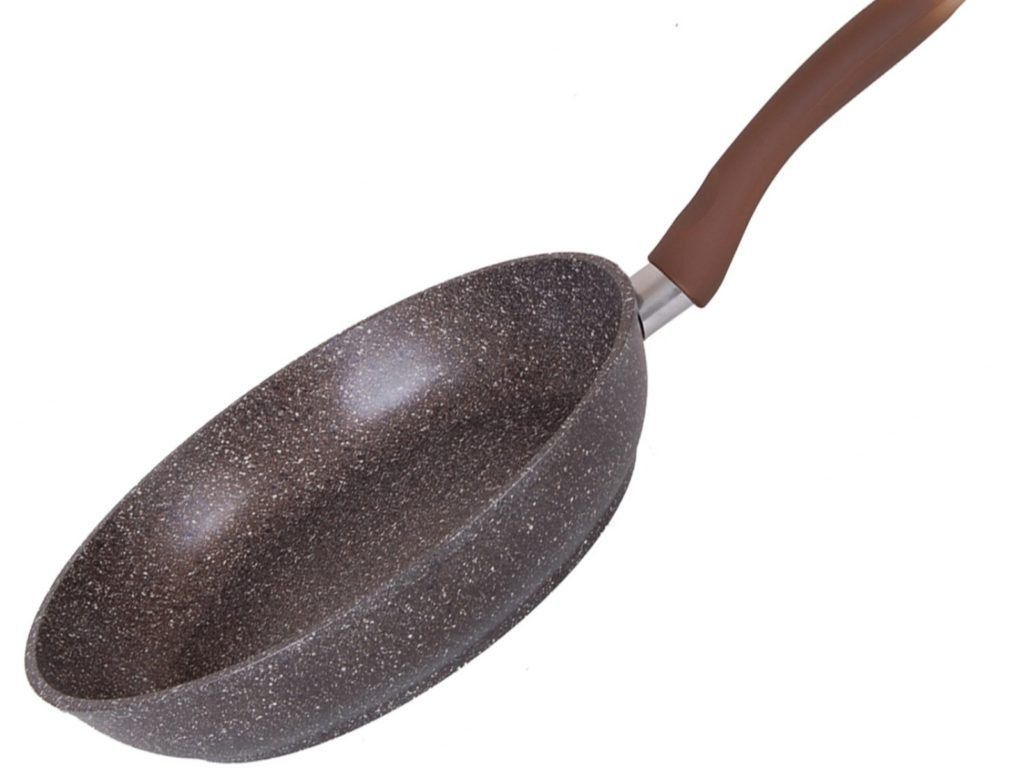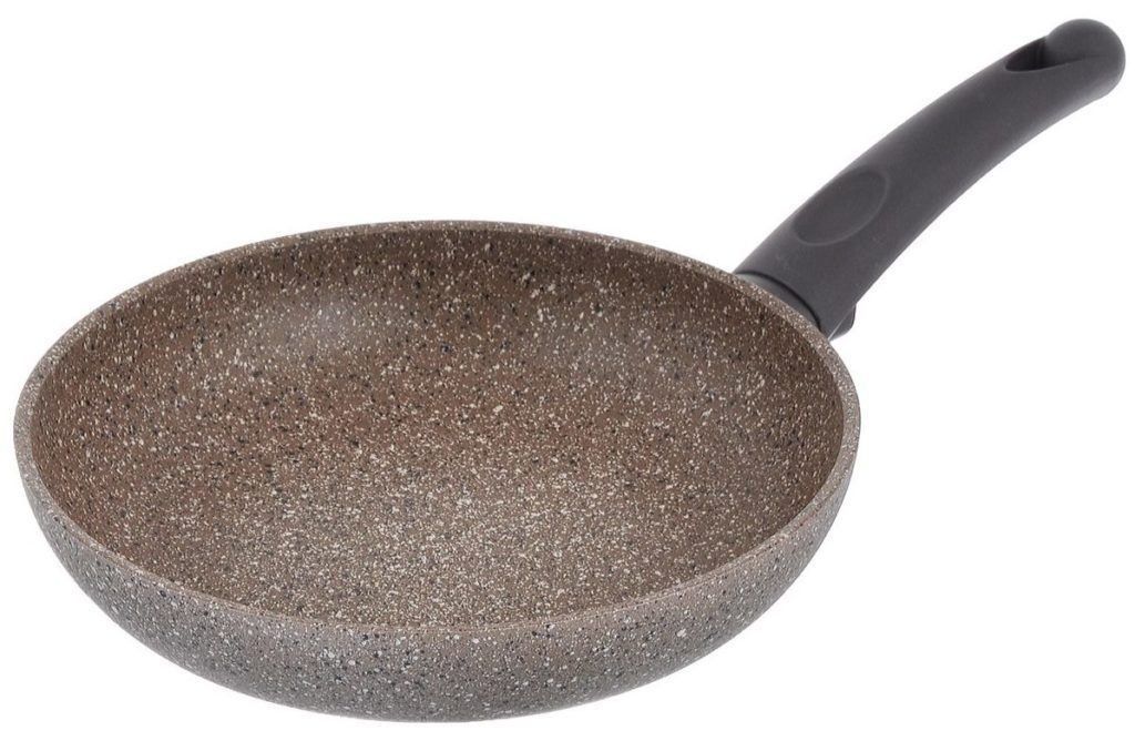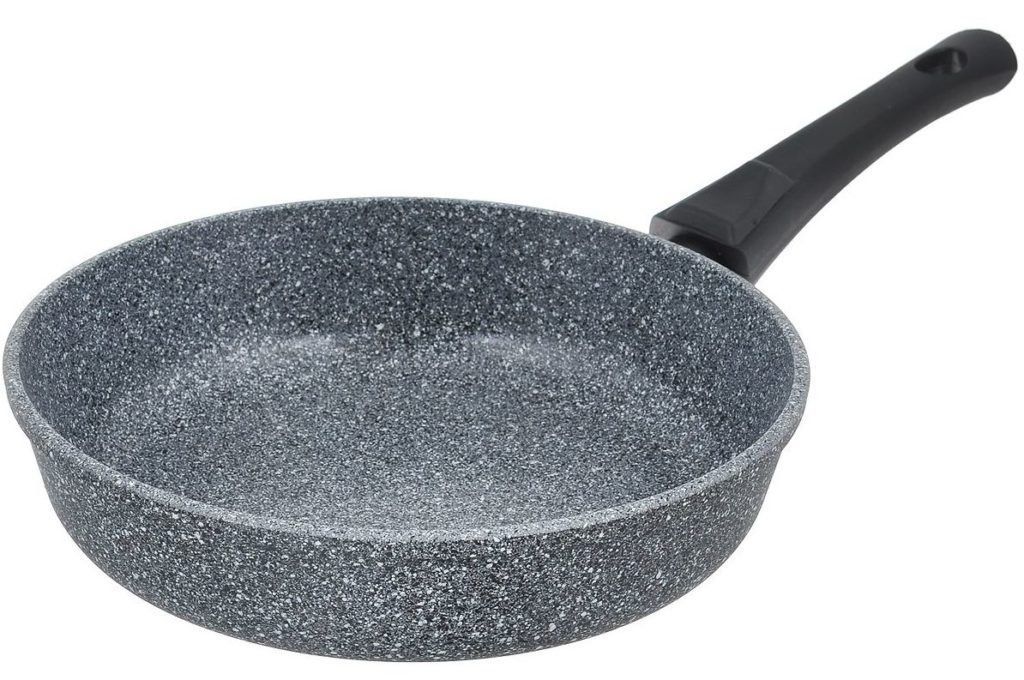 Eine der besten Bratpfannen des russischen Herstellers. Für die Antihaftschicht wurden dunkle Marmorsplitter verwendet. Es macht die Beschichtung besonders haltbar und hart. Daher hat die Pfanne keine Angst vor mechanischen Beschädigungen und dient regelmäßig lange. Die Wände und der Boden dieses Modells sind dicker. Dadurch sammeln die Wände und der Boden Wärme und verteilen sie gleichmäßig im Inneren.Gekochte Speisen schmoren noch einige Zeit in der Pfanne, nachdem der Herd ausgeschaltet wurde.