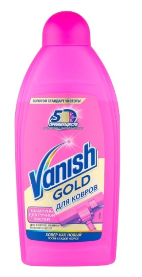 Mit diesem Shampoo können Sie die Polster von Möbeln und Teppichen ganz einfach von Schmutz und Staub befreien. "Vanish Gold" hat eine dicke Konsistenz, die bei Kontakt mit Wasser einen reichlich dichten Schaum bildet. Beim Auftragen dringt der Schaum tief in den Haufen ein und zerstört die Verschmutzungskomponenten. Nachdem der Schaum getrocknet ist, hat das Produkt ein aktualisiertes Aussehen. Es ist erwähnenswert, dass bei der Interaktion mit Vanish Gold-Schaumstoff der Teppichflor aufgeht und das Produkt wie neu aussieht. Nach dem Trocknen muss der Teppich abgesaugt werden, um Rückstände zu entfernen. Beim Arbeiten mit Polstern von Polstermöbeln. Auch hier wird der Schaum in einer dünnen Schicht aufgetragen und muss dann mit einem weichen Tuch entfernt werden.