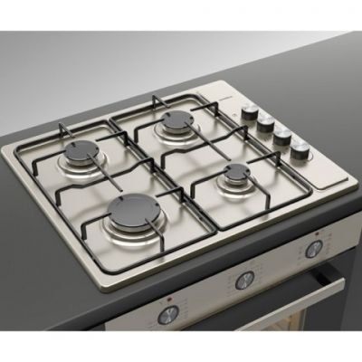 Das Kochgaskochfeld ist in einem schönen Stahldesign gefertigt. Die Position der Brenner ist Standard, die Regler sind seitlich. Dies ist besonders praktisch, wenn kleine Kinder in der Familie sind, die die Seitenfläche des Kochfelds mit Reglern nicht erreichen können, also ist dies ein zusätzlicher Schutz zusammen mit dem Gasregelsystem.