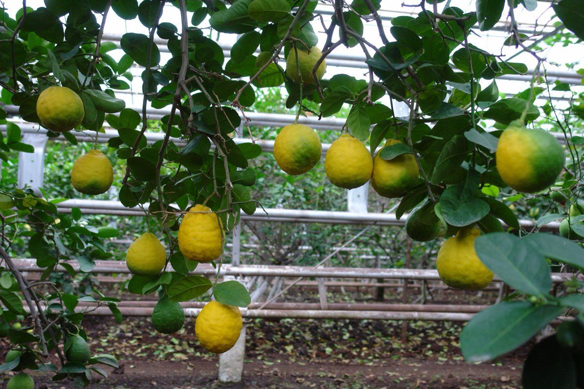 Lemonaria ist ein riesiges Gewächshaus mit einer Fläche von mehr als einem Hektar. Sie wachsen über 1000 Bäume. Es ist nicht nur Zitrus. Hier können Sie Vertreter der tropischen Flora sehen: Granatapfel, Bananen, Papaya, Ficus, Kiwi, Kaffee usw.