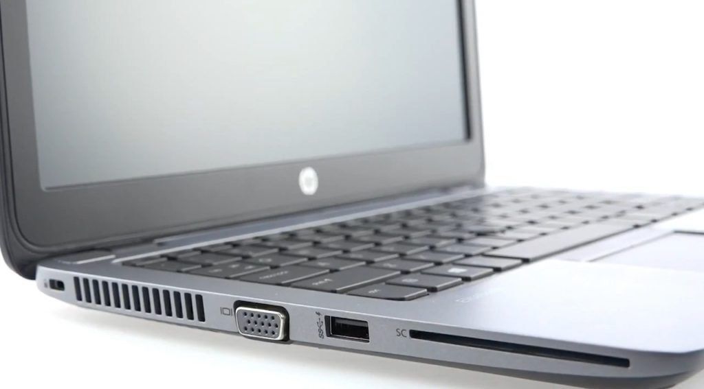 Auf der linken Seite befinden sich außerdem mehrere USB 3.0-Ports. Es gibt insgesamt vier davon, und das ist sehr praktisch, zum Beispiel kann einer von ihnen zum Aufladen verschiedener Geräte zugewiesen werden. Auf der gleichen Seite befinden sich ein Smartcard-Steckplatz und ein Schloss, damit der Computer an einem überfüllten Ort ohne Angst vor Diebstahl auf seinen Besitzer warten kann. In der Nähe der linken Seite befindet sich eines der Belüftungslöcher, das den Laptop vor Überhitzung schützt, indem es heiße Luft abführt.