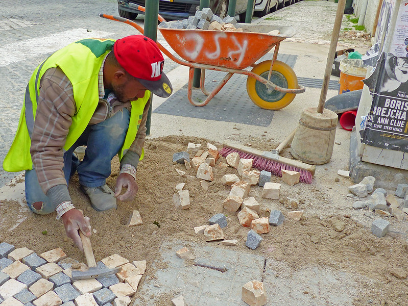 Sie können Steinpflaster selbst oder mit Hilfe einer speziellen Maschine verlegen.