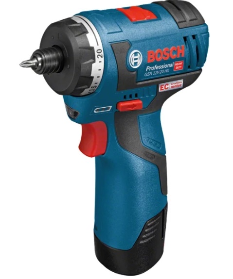 Das Bosch-Werkzeug ist ein hervorragender Vertreter der Mittelklasse-Schraubendreher. Der Bosch GSR 12V-20 HX verfügt über einen bürstenlosen Motor und ein elektronisches Schutzsystem, um eine lange Lebensdauer des Werkzeugs zu gewährleisten. Obwohl dieses Modell ein Vertreter kompakter Geräte ist, beträgt das maximale Drehmoment 20 Nm und die Spindeldrehzahl kann bis zu 1.300 U / min erreichen.