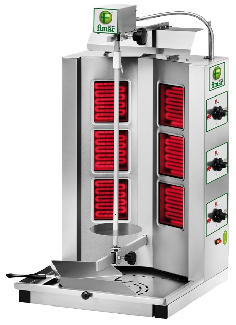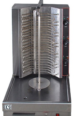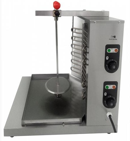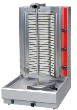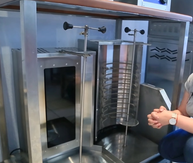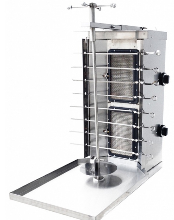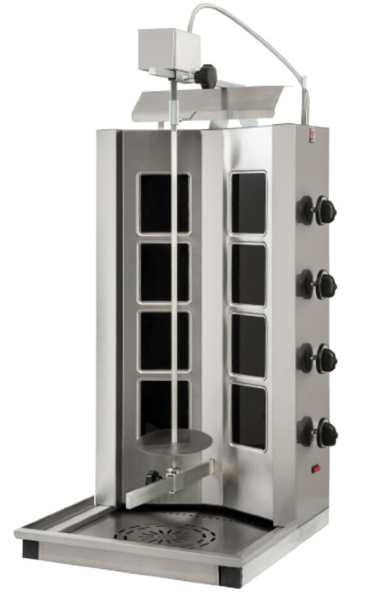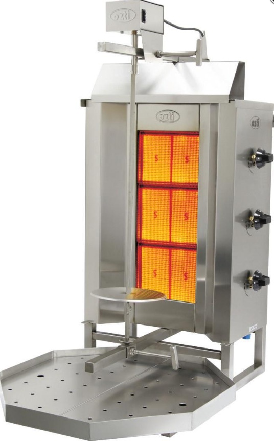 Die Installation läuft mit reduziertem Gas, wird für Straßenverkäufer und spezialisierte Cafés verwendet. Mit Hilfe von elektrischen Rohrheizkörpern, die Infrarotstrahlung erzeugen, wird Fleisch gekocht und auf ein spezielles Messer gepflanzt. Es dreht sich um die Brenner, bis das Produkt vollständig gegart ist.