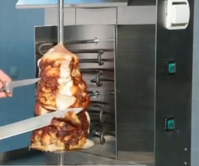 Verwendungszweck: Zum Braten von zuvor mariniertem Schweine-, Lamm- oder Hühnerfleisch, das für die Zubereitung von Shawarma verwendet wird, in Gastronomiebetrieben.