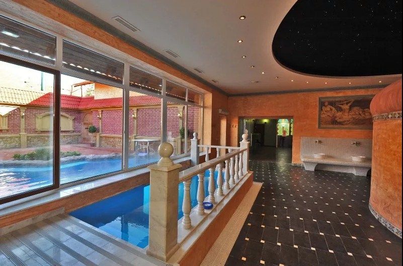 Ein exzellentes Interieur im gleichen Stil. Wohnzimmer mit Lederpolstermöbeln, Kühlschrank, TV. Es gibt einen Ruheraum. Ein übersichtliches Dampfbad, das sowohl im Saunamodus als auch im russischen Dampfbadmodus betrieben werden kann. Es gibt einen Swimmingpool und separate Räume zum Spielen von Billard und einen Karaoke-Raum. Billardtisch von ausgezeichneter Qualität. Der Raum ist für eine Gesellschaft von bis zu 16 Personen ausgelegt. Massage wird als zusätzlicher Service angeboten. Es wird empfohlen, Plätze im Voraus zu reservieren. Das Personal ist höflich und aufmerksam. Bei Streitigkeiten werden Probleme umgehend gelöst. Parkplatz für Autos ist bewacht. Sowohl für Familien- als auch für Betriebsferien geeignet. Es gibt ein Rabattsystem, verschiedene Aktionen werden durchgeführt. Sie können mit Ihren eigenen Speisen und Getränken kommen oder die Dienste der lokalen russischen Küche und einer Bar nutzen. Ein Ort mit tadellosem Ruf.