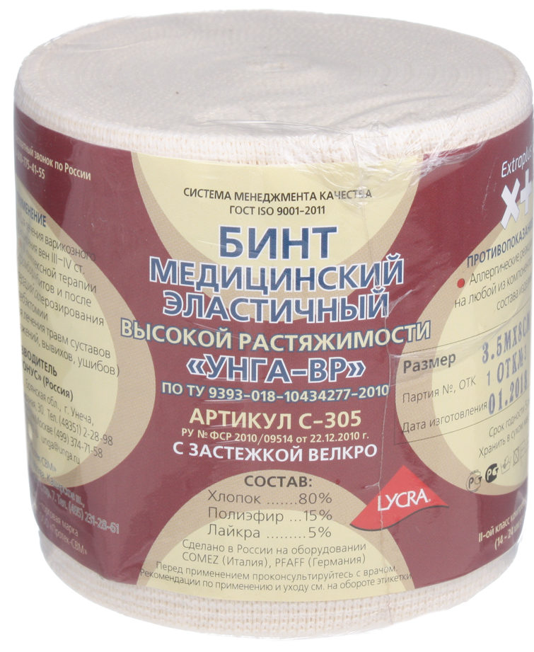 Gehört zur Kategorie der unsterilen Bandagen und kostet nur 119 Rubel. Es hat alle oben genannten Vorteile, die dieser Art von Produkt innewohnen. Es enthält kein Latex, sondern nur Baumwolle.