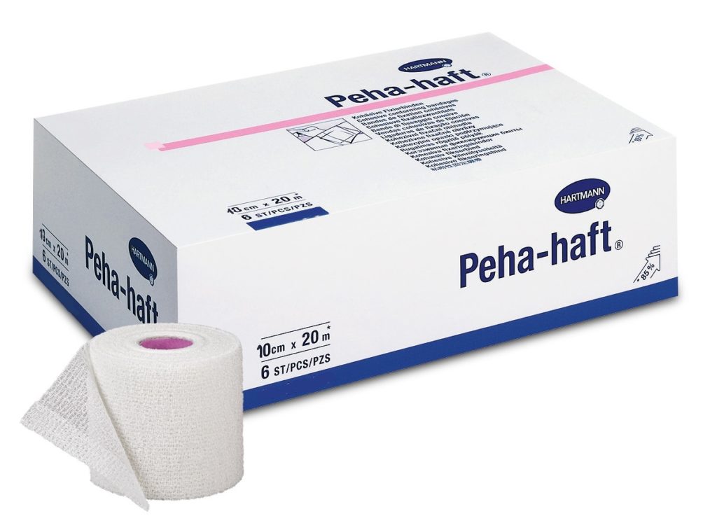 Auch hier verhindert das Kreppweben, dass die Fäden aus der Hauptzusammensetzung herausfallen und beispielsweise in eine offene Wunde gelangen. Bei Kontakt mit der Haut reiben sie nicht, die Bandage springt nicht auf den Arm und außerdem atmet die Haut. Wird zum Bandagieren in jedem Teil des Körpers verwendet.