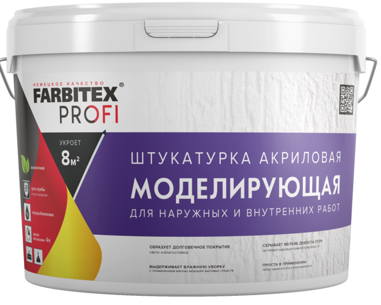TEXTURA FARBITEX PROFI wird in Russland hergestellt. Die Zusammensetzung kann verwendet werden, um Beton, Ziegel, Zement und andere Oberflächen zu behandeln, wobei es nicht notwendig ist, sie in einen vollkommen gleichmäßigen Zustand zu bringen. Geeignet für den Einsatz in Räumen mit hoher Luftfeuchtigkeit. Es ist einfach, mit diesem Material zu arbeiten, da es keine Kenntnisse während der Anwendung erfordert. Die Trockenzeit beträgt ca. 8 Stunden.