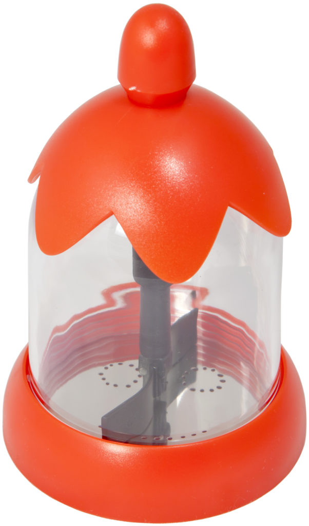 Es ist einfach zu waschen - der Behälter ist in wenigen Sekunden in Ersatzteile zerlegt. Nach der Reinigung ist es wichtig, den Behälter gründlich zu trocknen und den rotierenden Stab mit Metallklingen, die als Zerhacker dienen (zerkleinern der zusammengebackenen Pulverklumpen).