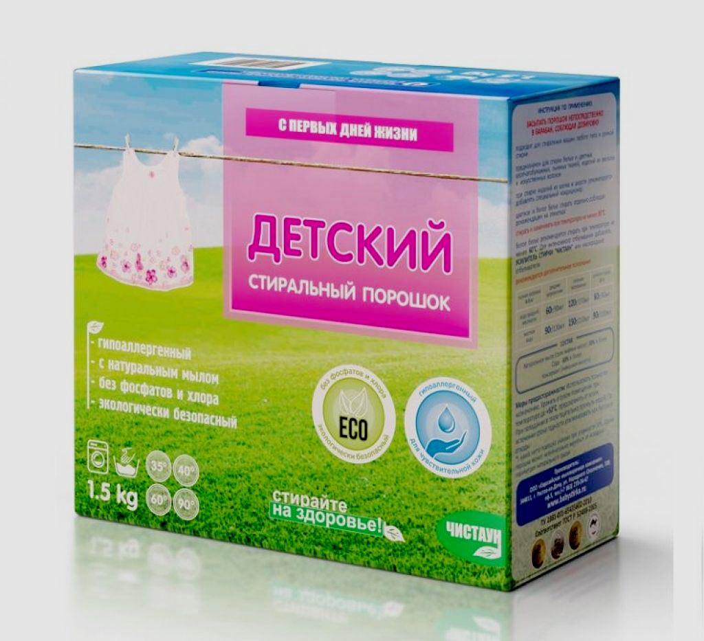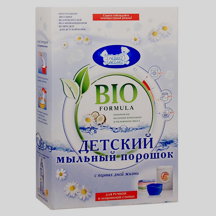 Nach Ansicht der meisten Käufer eignet sich das Konzentrat nicht nur zum Waschen von Kinder-, sondern auch von Erwachsenenkleidung, insbesondere wenn Menschen an verschiedenen allergischen Reaktionen und Hautausschlägen leiden. Die Produkte dieser Marke gehören zur Kategorie der professionellen Haushaltsprodukte, die ausschließlich umweltfreundliche Komponenten und ungiftige Zusatzstoffe enthalten. Das Pulver hat keinen Duft. Eine hervorragende Möglichkeit, Flecken zu entfernen, seien es Beeren, Öle, Farben oder Stiftpaste. Es wird sowohl für die Maschinen- als auch für die Handwäsche verwendet. Das Temperaturregime spielt keine Rolle, da sich die Substanz in kaltem Wasser gut auflöst.