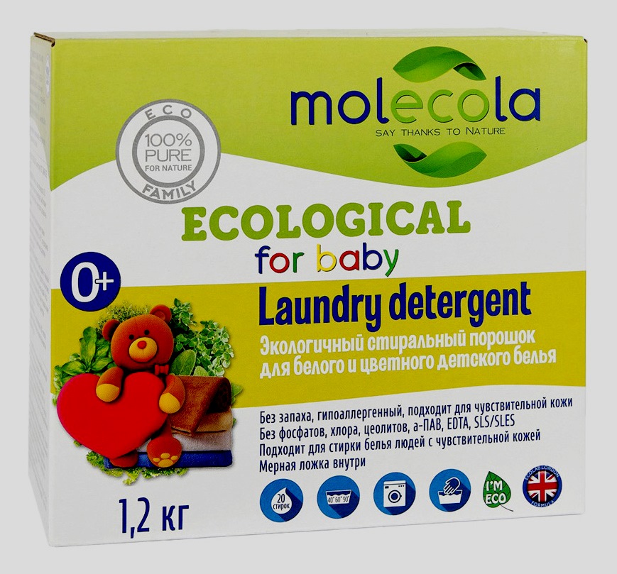 Die Verpackung des Produkts enthält keine Duft-, Konservierungs- und Farbstoffe. Eine ausgezeichnete Lösung bei erhöhter Empfindlichkeit der Epidermis und wenn atopische Dermatitis festgestellt wird. Es wird mit Verschmutzung in heißem und kaltem Wasser fertig. Ein ähnlicher Effekt wurde aufgrund der Zusammensetzung erzielt. Es enthält Percarbonat und Natriumcarbonat, die für das Bleichen von Dingen verantwortlich sind. Anionisches Tensid liegt innerhalb normaler Grenzen. Phosphonate machen Wasser weicher und Enzyme sind für die Verstärkung der Waschwirkung verantwortlich. Laut Dermatologen kann ein solches Produkt zum Waschen von Dingen für ein Neugeborenes verwendet werden.