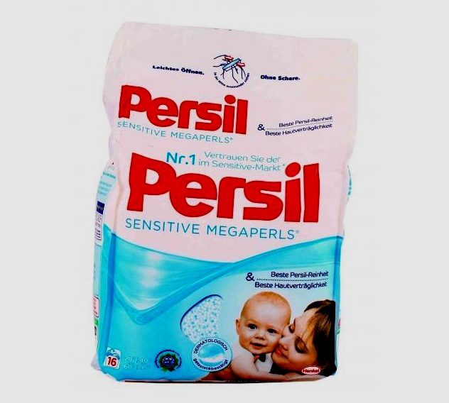 Entwickelt für die Hand- oder Maschinenwäsche von farbigen und weißen Kleidungsstücken. Es wird in verschiedenen Behältern sowie Typen (Gel, Kapseln, Granulat) geliefert. Die in der Zusammensetzung enthaltenen Bleichmittel und Enzyme liegen innerhalb der etablierten Norm. Das Pulver ist in der Lage, Verschmutzungen jeglicher Komplexität zu bewältigen, einschließlich veralteter. Spezielle Mikrogranulate sind für die Erhaltung des ursprünglichen Farbtons verantwortlich. Enthält keine Giftstoffe und basiert auf der Verwendung von Seife. Es gehört zur Kategorie der umweltfreundlichen, obwohl es aktive Zusatzstoffe enthält.