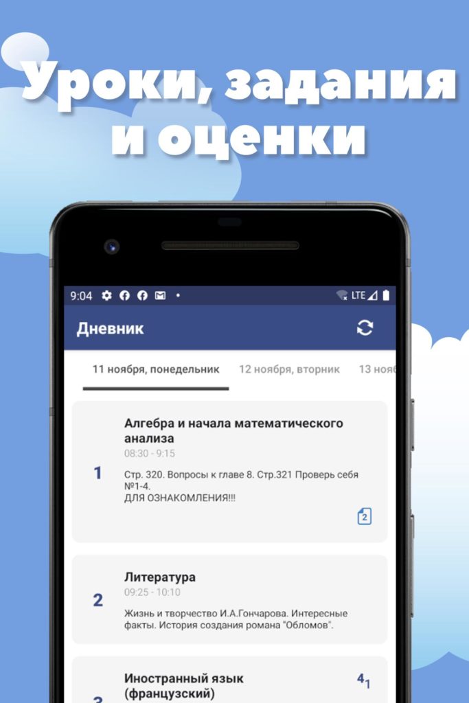 Eine Anwendung zum Anzeigen eines elektronischen Tagebuchs auf dem Portal "Dnevnik ru." Einfache Benutzeroberfläche, minimale Funktionalität – Stundenplan, Hausaufgaben und die Möglichkeit, Noten in Echtzeit zu verfolgen.