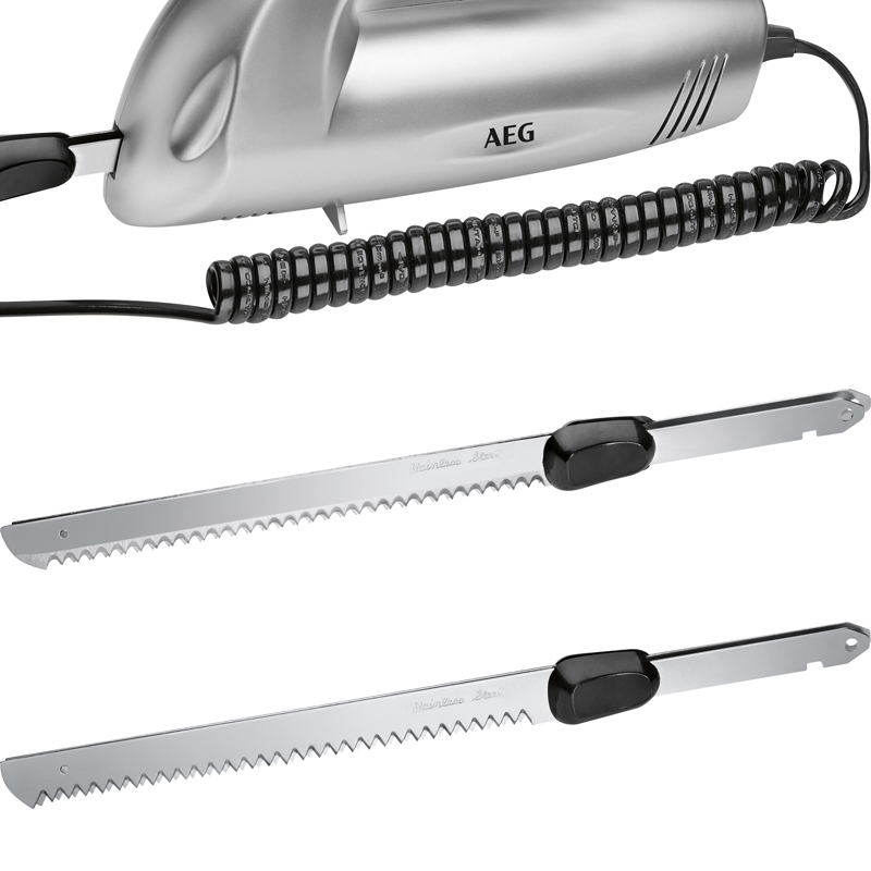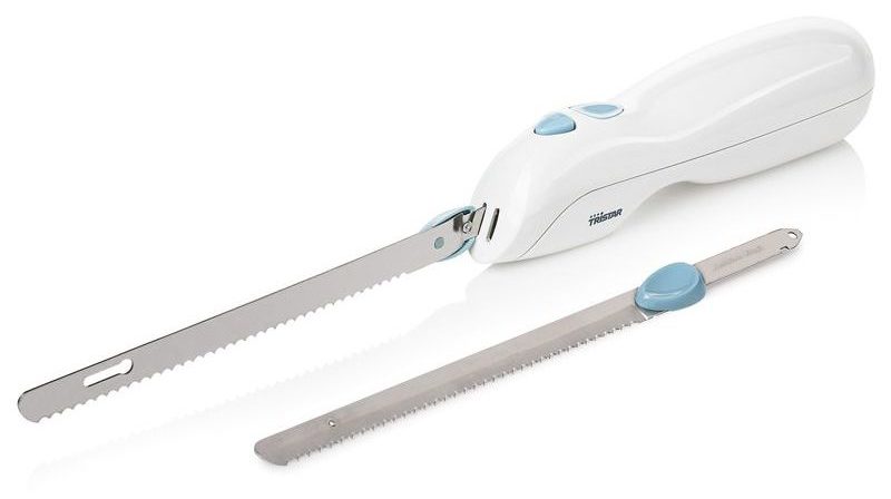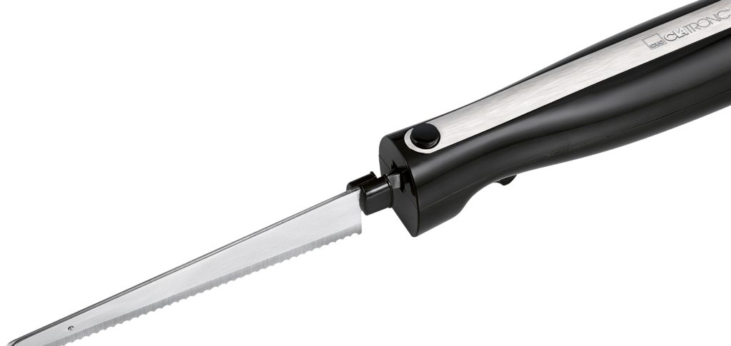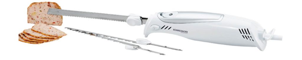 Für Benutzer, die es vorziehen, ein universelles Messermodell zum Schneiden aller Arten von Produkten in der Küche zu erwerben, müssen Sie auf dieses Gerät achten. Die Klinge besteht aus rostfreiem Stahl, der einer langfristigen Nutzung standhält. Die gezahnte Oberfläche der Klinge schneidet mühelos durch Knochen und harte Lebensmittel. Mit einem Messer lassen sich weiche Lebensmittel perfekt schneiden. Der Griff besteht aus strapazierfähigem Kunststoff. Das Gerät wird über eine Taste gesteuert, die sich an einer für die Handfläche zugänglichen Stelle befindet, aber den Bedienkomfort nicht beeinträchtigt. Das Modell macht beim Schneiden keine Geräusche.