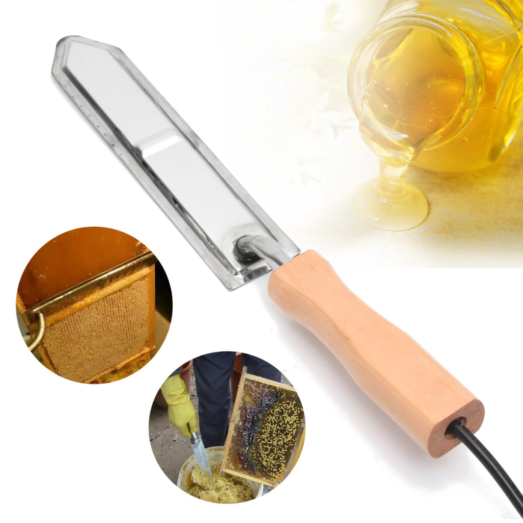Das Modell ist bei Imkern sehr beliebt. Der Schneideteil hat die Form des Buchstabens G. Mit diesem Modell können Sie verformte und gekrümmte Waben drucken. Das Schneidteil ist vernickelt. Daher wird es lange dauern. Das Schneidteil heizt sich in 10 Minuten auf. Der Griff ist aus Holz. Daher erwärmt es sich praktisch nicht.