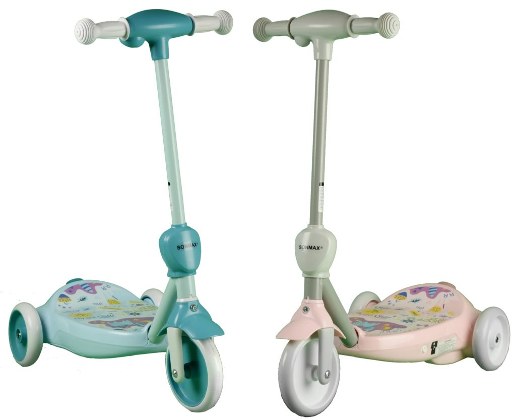 Das Produkt ist in verschiedenen Farben erhältlich und hat im Gegensatz zu den meisten Elektrorollern drei Räder (eins vorne und zwei hinten). Es ist für jüngere und dementsprechend leichte Fahrer konzipiert, deren Gewicht 20 kg nicht überschreitet.