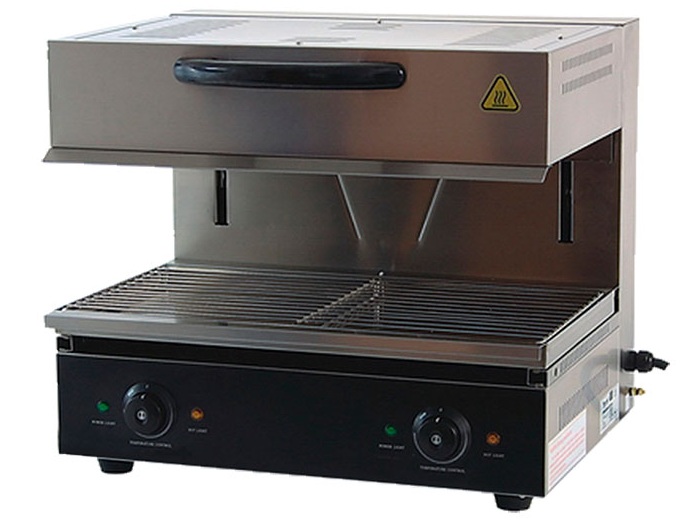 Für Cafés, Bars und Kantinen ist es besser, eine praktische Option zu verwenden - einen Salamandergrill mit Infrarotheizung.