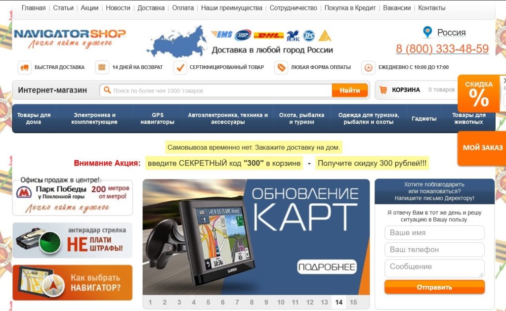 Ein großes Geschäft, das seinen Kunden eine große Auswahl an verschiedenen Produkten bietet. Navigator Shop besteht seit über 15 Jahren und arbeitet nur mit zuverlässigen, vertrauenswürdigen Lieferanten zusammen. Die Produktpalette ist in separate Kategorien unterteilt: