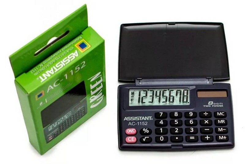 Ein Standard-Rechner, klein, mit einer Reihe von Grundfunktionen und eine hervorragende Lösung für den Schulgebrauch. Die Bildschirmgröße beträgt 8 Zeichen, die Stromversorgung erfolgt gleichzeitig aus dem Solarakku und aus dem Akkutyp „Tablet“ (schaltet sich bei Lichtmangel ein). Das Gerät ist extrem klein und passt problemlos in Ihre Handfläche, es lässt sich leicht in der Tasche tragen. Die Knöpfe sind aus Gummi, sie reagieren einfach auf einen selbstbewussten Druck. Es gibt eine Kunststoffabdeckung, die den Bildschirm und die Tastatur vor mechanischen Beschädigungen schützt. Die empfohlenen Kosten für Einzelhandelsketten betragen 80 Rubel.