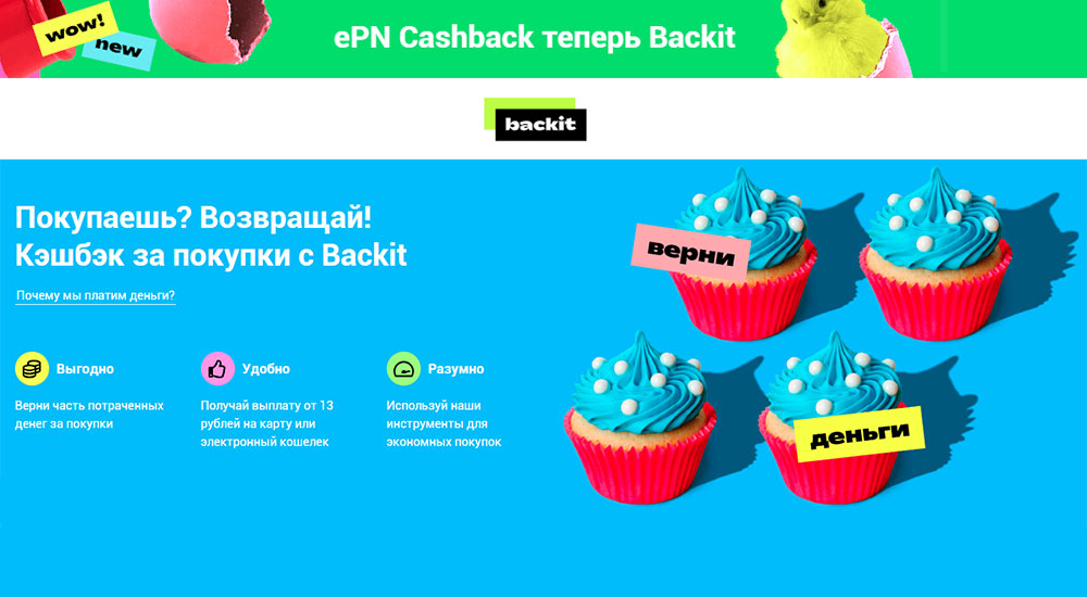 Seit drei Jahren vereint der Dienst mehr als 900 Geschäfte und 3 Millionen Benutzer. In dieser Zeit wurden mehr als 50 Millionen Dollar ausgezahlt. Die Ressource hieß EPN. Letztes Jahr wurde die Seite nach einem Update in Backit umbenannt. Mit dem neuen Design blieben die Bedingungen gleich. Cashback wird innerhalb eines Monats bestätigt. Geld wird in eine elektronische Geldbörse mit einer Mindestauszahlung von 13 Rubel abgehoben. Die Auszahlung von Geldern auf eine Bankkarte beginnt bei 500 Rubel. Informationen auf der Seite erscheinen 60 Minuten nach der Zahlung für den Kauf. Wenn ein spezieller Aktionscode aktiviert wird, erhöht sich der Schwellenwert auf 7,5 % des Produktpreises. Aktionscodes mit einer höheren Rate werden wöchentlich veröffentlicht. Ihre Gültigkeitsdauer beträgt 3 Tage.Sie können den Prozentsatz in Ihrem persönlichen Konto des Dienstes überprüfen; Änderungen werden nicht auf Aliexpress widergespiegelt.