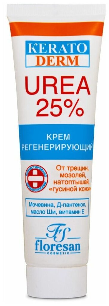 Der Hersteller präsentiert ein gutes Präparat, das Extrakte aus Kamille, Weizenkeimöl, Sheabutter enthält. Der hohe Gehalt an Urea fördert die Lockerung rauer Haut, die sanfte Entfernung abgestorbener Zellen, ohne die gesunde Haut zu beeinträchtigen. Preis: 280 Rubel.