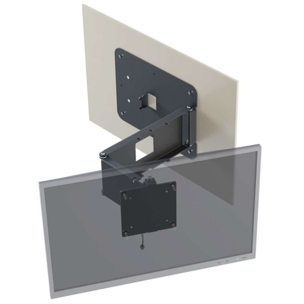 Die Kopie zeichnet sich durch eine erhöhte Tragfähigkeit (bis zu 46 Zoll) aus, die durchschnittlichen Kosten betragen 36,9 Tausend Rubel. Das Gerät für Großgeräte ist außerdem mit fortschrittlichen Technologien ausgestattet, die ein einfaches Drehen mit einer Hand ermöglichen. Die Knoten der Struktur ermöglichen eine enge Verbindung zur Wand, wodurch Sie den Raum im Raum ergonomisch organisieren können.Wie in der vorherigen Position ist das Kabelfach mit speziellen Befestigungselementen zur bequemen Befestigung von Drähten ausgestattet. Dieses Gerät unterstützt ein Tastaturzubehör (nicht im Lieferumfang enthalten). Drehungen bis zu 360° und Winkel bis zu 70° sind möglich, Installation in vertikaler und horizontaler Position.