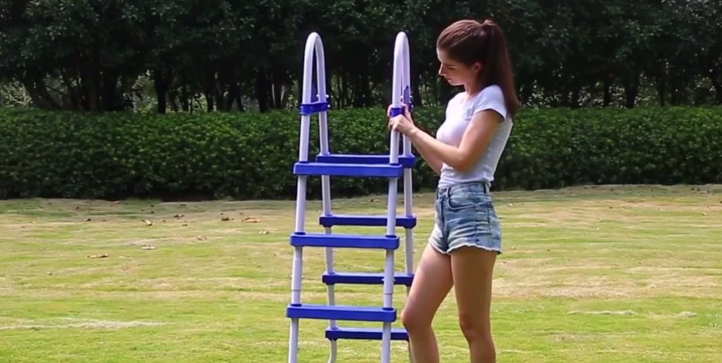 Das Design ist für den bequemen Einsatz in Pools konzipiert, deren Wandhöhe nicht mehr als 122 cm beträgt.Für die Installation sind keine Spezialwerkzeuge erforderlich, nur ein Schraubendreher ist erforderlich. Die Leiter hat einen weiten Winkel zwischen den Seiten, was das Klettern erleichtert.
