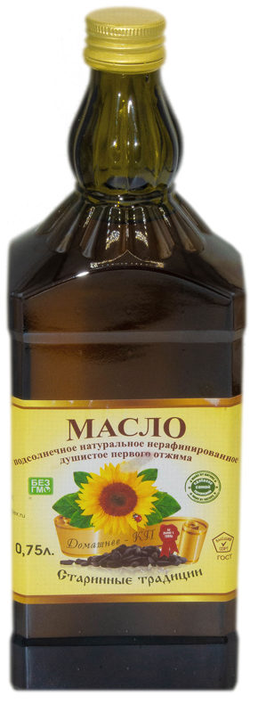 Unraffiniertes Sonnenblumenöl mit reichhaltigem Geschmack und ausgeprägtem Geruch. Hergestellt in 500 ml dunklen Glasflaschen.„Kuban-Produkt“ wird durch Kaltpressen von gerösteten Sonnenblumenkernen gewonnen. Zeigt eine hohe Qualität, enthält eine große Menge an Vitaminen sowie nützliche Substanzen wie Kohlenhydrate, Phospholipide und Stearine. Diese Marke eignet sich für Gerichte wie Salat, warme Gerichte, Salzkartoffeln. Die durchschnittlichen Kosten betragen - 168 Rubel.