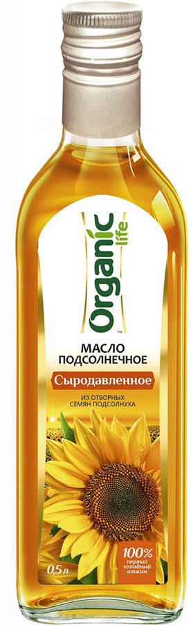 Unraffinierte Sonnenblume, erste Klasse. Es ist umweltfreundlich und wird aus natürlichen Rohstoffen durch Kaltpressen (unter einer mechanischen Presse) hergestellt.Dank der modernen Technologie der Samenverarbeitung weist das fertige Produkt eine hohe Qualität, Sättigung mit Vitaminen und für den Körper nützlichen Substanzen auf. Der Geschmack des Produkts ist mäßig reichhaltig, das Aroma ist leicht, zart und unterbricht den Hauptgeschmack der Gerichte nicht. Es wird häufig bei der Zubereitung von Salaten, Vorspeisen und Saucen verwendet. „Organic Life“ wird in einem Glasbehälter mit einem Volumen von 500 ml hergestellt und kann ohne Eigenschaftsverlust das ganze Jahr über gelagert werden. Die durchschnittlichen Kosten betragen - 284 Rubel.