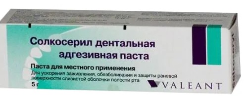 Dieses Medikament wird verwendet, um die Gewebereparatur zu stimulieren. Es wird zur Heilung, Anästhesie der Mundhöhle verwendet. Solcoseryl ist ein Dialysat, das durch Ultrafiltration aus Kälberblut gewonnen wird. Es verbessert die Sauerstoff- und Nährstoffversorgung der Zellen, beschleunigt die Kollagensynthese und das Auftreten von neuem Gewebe. Solcoseryl wirkt auch als Anästhetikum. Hat eine schnelle analgetische Wirkung. Der Schmerz hört 2-3 Minuten nach der Anwendung auf, die Wirkung hält bis zu 5 Stunden an. Die Hafteigenschaften der Paste ermöglichen es Ihnen, die Schutzwirkung des Zahnfleisches für 3-5 Stunden aufrechtzuerhalten.