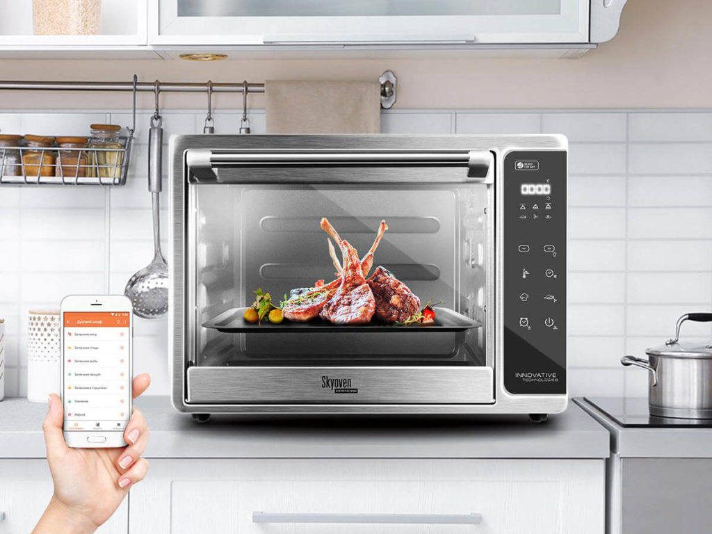 Kleiner Ofen für anspruchsvolle Kunden. Der Hersteller nennt die Idee einen smarten Kochschrank. Im Inneren des Modells ist es einfach, Hauptgerichte, hausgemachte Kuchen, Desserts und Muffins zuzubereiten. Die Steuerung kann über eine Anwendung auf einem Smartphone erfolgen. Es wird vorgeschlagen, 16 Programme auszuwählen, es gibt eine Funktion für verzögerten Start und Heizung sowie einen Konvektionsventilator. Das Programm ist sehr praktisch - eine automatische Maschine für Rezepte.