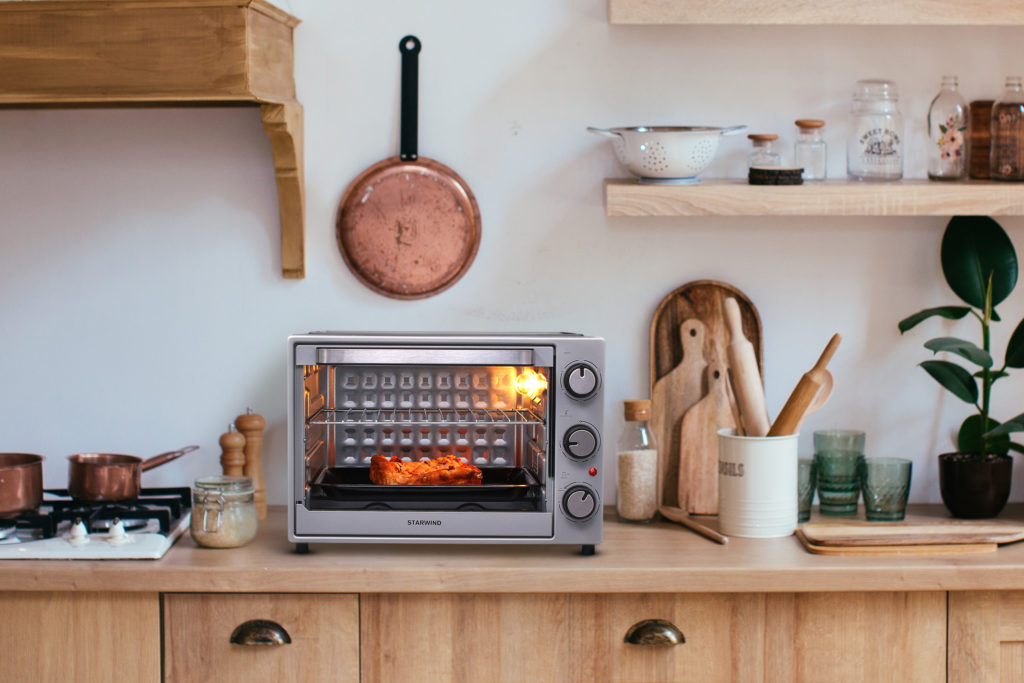 Der Minibackofen Starwind SMO2004 ist eine praktische und stilvolle Lösung für eine kleine Küche oder ein Sommerhaus, denn das Gerät kann nicht nur einen Mikrowellenherd, sondern auch einen vollwertigen Backofen ersetzen. Die silberne Farbe des Starwind SMO2004-Körpers ermöglicht es Ihnen, den Mini-Ofen in fast jedes Interieur zu integrieren.
