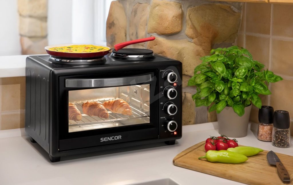 Der Ofen dieses Modells ist ideal für den Einsatz in einem Hostel, in einer kleinen Küche oder einem Cottage.Neben der Kammer verfügt der Minibackofen über zwei leistungsstarke Brenner, sodass Sie zwei oder drei Gerichte gleichzeitig zubereiten können. Im Inneren des Ofens befindet sich eine Hintergrundbeleuchtung, mit der Sie den Garvorgang überwachen können. Sie werden durch spezielle Indikatoren über die Bereitschaft des Gerichts informiert.