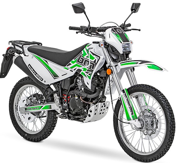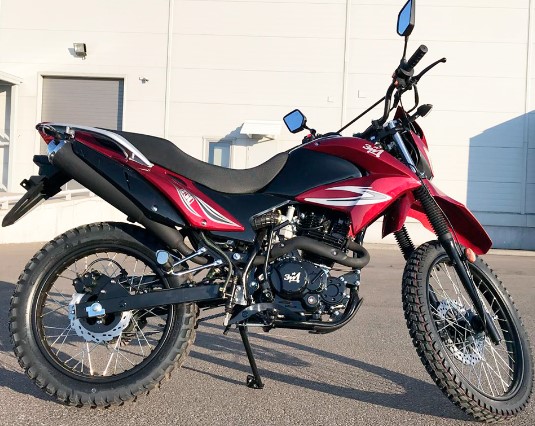 Gemeinschaftsproduktion eines in- und ausländischen Herstellers. Doppelmodell in roter und schwarzer Lösung mit zwei Seitenspiegeln. Die Zündung ist elektronisch, die Bremsen arbeiten weich (vorhersehbar), der Kraftstoff wird vom Vergaser zugeführt. Der Radstand ist eingespeicht. Was die Aufhängung betrifft: hinten - Monoshock, vorne - Teleskopgabel. Kraftfahrzeuge haben ein Ventilpaar pro Zylinder, das vertikal angeordnet ist. Die Instrumententafel ist mit einer Flüssigkristallanzeige und einer analogen Tankanzeige ausgestattet.