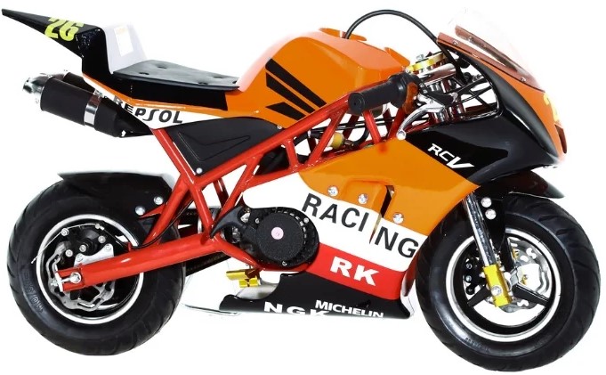 Der Radstand mit Speichen ist aus Stahl. Die Vorderradaufhängung ist eine Teleskopgabel mit zwei Stoßdämpfern vom federhydraulischen Typ. Die Hinterradaufhängung ist eine Pendelgabel mit einem federhydraulischen Stoßdämpfer. Das Fahrrad wird mit Benzin mit einer Oktanzahl von 92 oder mehr befüllt.Das Fahren dieser Technik erfordert keinen Führerschein (es gilt als sportliches „Geschoss“).