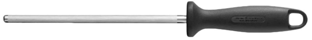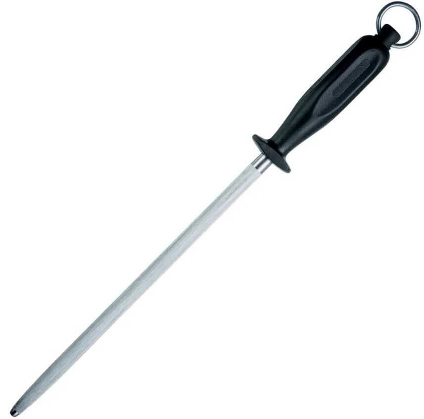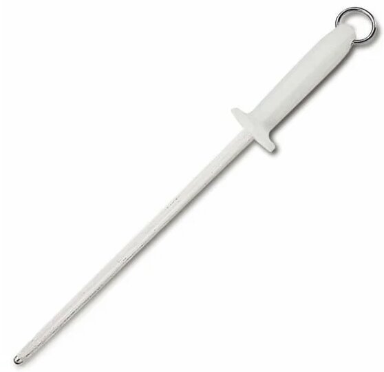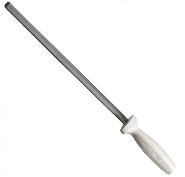 Musat ist ein Werkzeug bestehend aus einem Griff, einem Stab, der an eine Feile erinnert. Der Griff ist aus Kunststoff, Holz und hat ein praktisches Design. Die Stange ist lang, unterscheidet sich in Form, Oberfläche. Zwischen der Klinge und dem Halter befindet sich ein Schutz, der die Finger schützt.