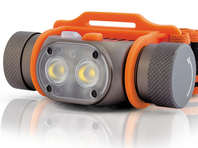 Unsere Bewertung hat bereits das ältere Modell des Fenix-Stirnbands berücksichtigt, aber es ist eher für den Außeneinsatz geeignet, aber das HL15 wird eine hervorragende Option für die Arbeit in einem dunklen Raum sein. Der Illuminator ist leicht, wiegt 60 g, lässt sich bequem befestigen und ist am Kopf überhaupt nicht zu spüren. Durch Anpassen der Beleuchtungsmodi können Sie die optimale Helligkeit für die Arbeit mit Objekten in der Nähe auswählen und den entfernten Bereich des Raums beleuchten. Maximales Licht im Turbomodus bis zu 200 Lumen mit AAA-Mini-AA-Batterien. Zwei Steuerknöpfe sind für den Betrieb von zwei Dioden zuständig. Durch Drücken einer Taste können Sie eine der Dioden sperren oder einstellen. Das Modell ist vor Überhitzung geschützt, nach 3 Minuten Betrieb im Turbomodus wird die Wärme automatisch neu verteilt, wodurch die Hauptwärme von den Dioden abgeführt wird, wodurch eine lange Lebensdauer gewährleistet wird.